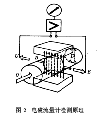 具有導電性的被測介質液態(tài)以一定的速度流動時,則在與流動方向垂直的方向上產(chǎn)生與流量成比例的感應電勢 E,其值為