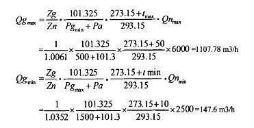 已知介質(zhì)的*低壓力、*高溫度和所需的*大標(biāo)準(zhǔn)狀況下的流量,計(jì)算*大工況下的流量: