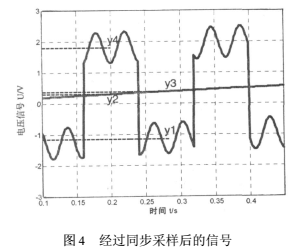 對(duì)于基線零點(diǎn)漂移,“正負(fù)差值法”是比較有效便捷的選擇,它不需要直接消除信號(hào)中的基線零點(diǎn)漂移,而是通過算法上去掉基線零點(diǎn)漂移對(duì)測量結(jié)果的影響。該系統(tǒng)中,激磁信號(hào)的頻率為6.25Hz,由于所測量的液體流速不會(huì)有明顯的突變,所以在信號(hào)的一個(gè)周期0.16s內(nèi),可以采用一個(gè)波峰減去波谷的均值來表示此時(shí)的流量信號(hào),也即如圖3中|y4-y1|其中y4是從nT+T/4到nT+T/2采樣結(jié)果的算術(shù)平均值,y1是從到(n+1)T進(jìn)行采樣結(jié)果的算術(shù)平均值。但是由于斜率零點(diǎn)漂移的存在,會(huì)出現(xiàn)如圖3中|y3-y2|的誤差,所以需要利用式(15)的結(jié)果對(duì)該誤差進(jìn)行修正,修正后的結(jié)果也就是此時(shí)管道中液體感應(yīng)出的電動(dòng)勢(shì)為: