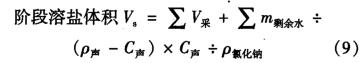 由于每次測腔都有等待和準(zhǔn)備時(shí)間,所以腔內(nèi)鹵水濃度會(huì)繼續(xù)升高,腔體體積擴(kuò)大。故該階段溶鹽體積應(yīng)按照式(9)計(jì)算: