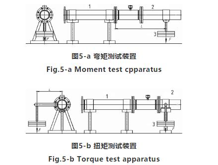對于高壓機油流量計來說,還應當詳細說明流量計所需求的彎曲與扭力力矩的保護水平。此數(shù)據(jù)是通過試驗直接獲得,彎矩測試裝置如圖5-a 所示,直管段1 連接氣體流量標準裝置,在直管段2 預先確定的力臂L 位置附加垂直方向的力F 而形成彎矩M;扭矩測試裝置如圖5-b 所示,直管段1 連接氣體流量標準裝置,在直管段2 側(cè)面預先確定的力臂L 位置附加垂直方向的力F 而形成扭矩T。而彎矩與扭矩均是作用于流量計入口與出口法蘭處。由于此項測試主要針對流量計強度的校核,為了更有說服力、提高可靠性,故將鋁合金殼體的中低壓渦輪流量計DN80-G100用于此次測試。而整個測試過程是將砝碼F 按EN12261 表10 中要求1 倍、2 倍直至做到4 倍(即力矩為3 040 N·m),未發(fā)現(xiàn)流量計殼體有任何異常變化。而測試結(jié)果表明在施加砝碼F 之前、過后得到的指示誤差與施加砝碼F 之前的指示誤差未有明顯變化。
