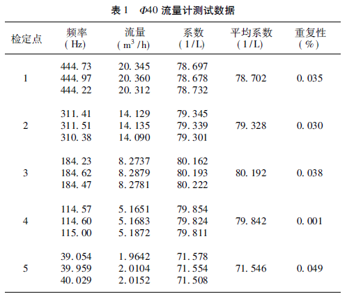 此次試驗測試選用兩臺汽油流量計,口徑分別為Φ40、Φ25,主要考慮40 和25 口徑的流量計應(yīng)用較多,同時流量銜接,更具有代表性。其主要參數(shù)如下: