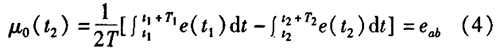 智能濃硫酸電磁流量計一般都采用工頻交流電源供電,其電源電壓的幅值和頻率的變化都會給智能濃硫酸電磁流量計帶來電源性干擾噪聲。對電源電壓的幅值變化,因采用多級集成穩(wěn)壓,一般而言電源電壓的幅值變化對電磁流量的測量精度影響不大。當電源電壓的頻率波動時,雖然其波動范圍有限,但對智能濃硫酸電磁流量計測量精度影響較大。為了解決工頻干擾問題,實現(xiàn)對流體流速感應(yīng)電勢e柚信號的準確測量,需利用以下基本關(guān)系:①勵磁周期為工頻周期的整數(shù)倍,即勵磁頻率為50/nHz(n為偶數(shù));②正負勵磁下的同相位采樣。圖2是對應(yīng)低頻矩形波勵磁形式下的典型電勢信號形式,按上述關(guān)系在一個勵磁周期下,若假設(shè)t。和t:點為工頻干擾的等效干擾點,且采樣寬度T=T1=T2,則e –ab的基本算式為:,
