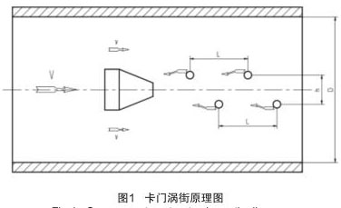 按國際標(biāo)準(zhǔn)化組織 IS07145(在環(huán)形截面封閉管道中的流體流量測定--在截面一點(diǎn)的速度測量法),采用埋入壓電晶體的渦街測速探頭,插入大口徑工業(yè)管道內(nèi),將卡門旋渦頻率轉(zhuǎn)換為與流量成正比的標(biāo)準(zhǔn)信號:(4 ~ 20)mA DC。