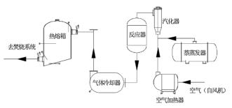 以原料萘為例。萘由原料儲罐經(jīng)液萘泵加壓后進入萘蒸發(fā)器,液萘在萘蒸發(fā)器內(nèi)由中壓蒸汽加熱汽化分離,經(jīng)流量調(diào)節(jié)閥、流量計和氣萘切斷閥后進入汽化器;空氣經(jīng)風(fēng)機加壓后,經(jīng)空氣加熱器加熱后進入汽化器,氣萘和空氣在汽化器內(nèi)混合均勻后進入氧化反應(yīng)器上部,經(jīng)催化床層發(fā)生氧化反應(yīng)生成苯酐和少量的副產(chǎn)物(以順酐、苯甲酸、萘醌、和鄰苯二甲酰亞胺為主);反應(yīng)氣體經(jīng)煤氣流量計冷卻后再進入切換冷凝器進行凝華捕集,少量未被捕集的有機物和不凝氣體經(jīng)尾氣管路進入蓄熱焚燒裝置焚燒處理,焚燒后的尾氣達標排放。