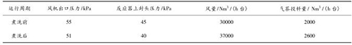煤氣流量計煮洗吹掃后,裝置運行期間無燃爆事故,且裝置運行的風(fēng)量明顯提高,系統(tǒng)阻力明顯降低,投料量增加?,F(xiàn)將煮洗前后的運行數(shù)據(jù)對比如下: