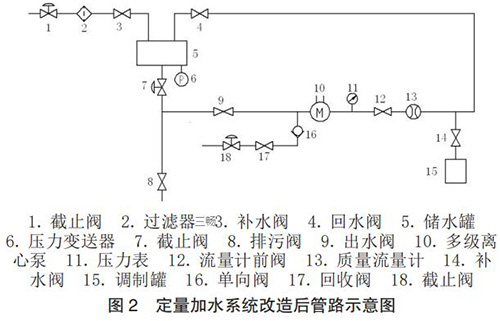 根據(jù)設(shè)計(jì)思路,對定量加水系統(tǒng)的管路進(jìn)行了改造設(shè)計(jì),改造后管路示意圖如圖 2 所示。