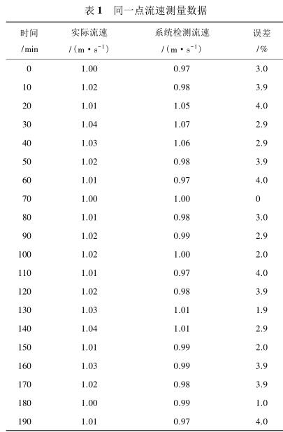 由表 2 測量數(shù)據(jù)可知,系統(tǒng)在測量低流速液體時(流速小于 1 m/s)誤差較大,達(dá)到 5%,當(dāng)待測液體的流速增大時(大于 1.4 m/s),誤差逐漸減小,基本維持在 3%以內(nèi)。由此可見系統(tǒng)具有較高的檢測精度,尤其是當(dāng)管道中的液體流速較高時,系統(tǒng)的檢測誤差不超過 3%,達(dá)到了設(shè)計(jì)預(yù)期。