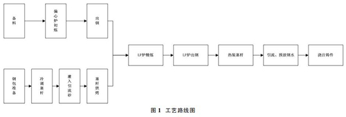 1.1 偏心爐+LF 爐雙聯(lián)冶煉工藝,鋼包冷調(diào)、熱裝燃氣流量計工藝路線圖簡介如圖 1。