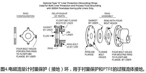 圖4.稀硫酸流量計(jì)襯里保護(hù)(接地)環(huán),用于襯里保護(hù)和PTFE的過程流體接地。