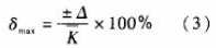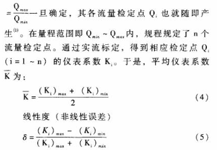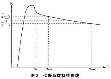 在QQmax,即在測量范圍之外誤差將超過δmax。這就是說雖然渦輪流量傳感器具有很好的重復(fù)性,但是由于電脈沖信號頻率F與體積流量Q之間是非線性的,按照常規(guī)的平均儀表系數(shù)`K的計(jì)算方法,對于一定的誤差限士A,由于非線性誤差的存在使得渦輪流量傳感器的工作范圍只能限定在Qmin~Qmax之內(nèi)。