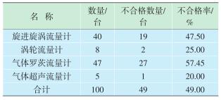 在2017年的工作基礎(chǔ)上,對2018年送檢的氣體流量計進行了抽查,并按不同類型進行了統(tǒng)計(表2)。