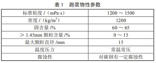 對跑漿進行分析后發(fā)現(xiàn),跑漿是一種由煤漿和一些雜質(zhì)混合而成的半流體物質(zhì),當管道蒸汽流量計使用煤倉中煤堆中上部煤時,由于煤質(zhì)較好,跑漿中小煤塊極少,性質(zhì)同正常煤漿,只是固含量稍高;而使用煤堆底部的煤時,煤質(zhì)差管道蒸汽流量計研磨不充分,跑漿中含有約 15% 的小煤塊,分析后的跑漿物質(zhì)參數(shù)如表 1 所示。
