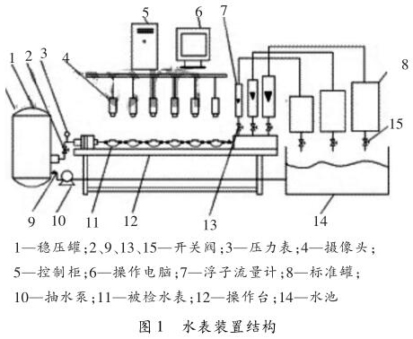 水表檢定裝置是全自動水表校驗(yàn)裝置,水表檢定裝置以計算機(jī)為核心,它在需要檢定水表上方安裝攝像裝置,連接到圖像采集和高速計算器中,計算器可以識別水表指針的流量數(shù)值,自動控制水流量,實(shí)現(xiàn)水表檢驗(yàn)的全自動化,針對水表檢定裝置存在的問題提出解決方案,減少水表檢定裝置在使用過程中出現(xiàn)質(zhì)量問題,讓水表檢定裝置可以不斷完善。