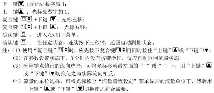 流量計在出廠時,制造廠已將模擬量輸出的各參數(shù)校準好。一般情況下,不需要用戶再作調整。若出現(xiàn)異常情況,需要用戶校準模擬量輸出時,只需進入電流零點修正和電流滿度修正兩菜單,按下列操作規(guī)程進行,不需要外接信號源。