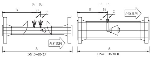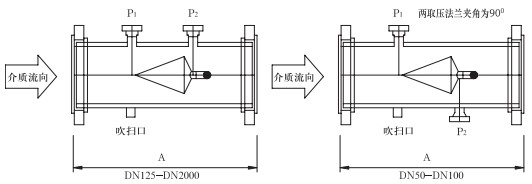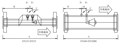 取壓口法蘭公稱直徑(標(biāo)準(zhǔn)設(shè)計(jì))為DN40,也可以依據(jù)用戶要求選取法蘭直徑。