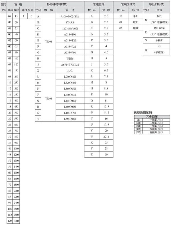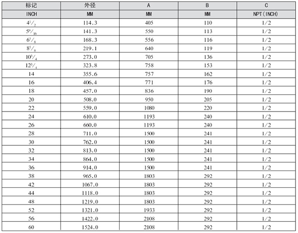 總長度允許誤差范圍:φ114.3-273,±4mm;DN323.8-610,±6mm;DN660-1524,±7mm。長輸管道公稱直徑從“4 1/2~60”,只有一個(gè)外徑系列,故選項(xiàng)時(shí)不選外徑代碼。