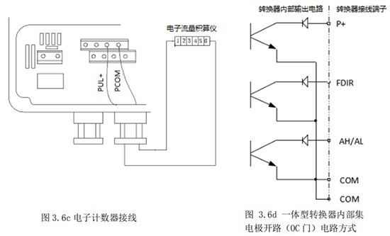 3.4.5 頻率(脈沖)、上下限報(bào)警、流向標(biāo)示等輸出均為集電極開路的電平輸出信號(hào)。