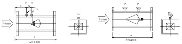 節(jié)流元件為相似形方錐,為測(cè)量方形(正方和矩形)管道內(nèi)介質(zhì)的流量而專業(yè)設(shè)計(jì)。