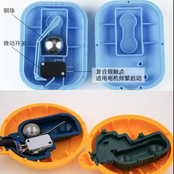 當(dāng)浮球在液體浮力的作用下隨液位的上升或下降到與水平呈一定角度時(shí),浮球體內(nèi)的驅(qū)動機(jī)構(gòu)——驅(qū)動大容量微動開關(guān),從而輸出開(ON)或關(guān)(OFF)的信號,共報(bào)警提示或遠(yuǎn)程控制使用: